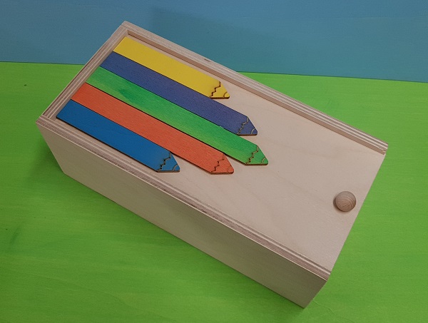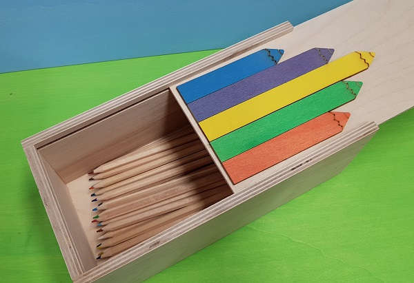 Scatoletta pastelli. ULTIMO PEZZO Scatoletta in legno di faggio con coperchio a sfilo sul quale sono stati applicati dei pastelli colorati. Ideale per contenere pastelli , pennarelli, tempere , pastelli a cera in grandi quantità. A scelta può contenere qualsiasi cosa. Prodotto in Italia con legno Italiano. Dimensioni esterne: Lunghezza cm.26 - Larghezza cm.13 - Altezza cm.9,5 Dimensioni interne: Lunghezza cm.24 - Larghezza cm.11 - Altezza cm.8 circa