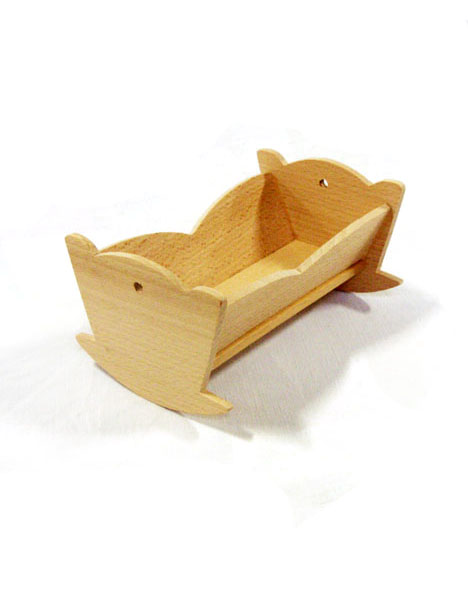 Culla in legno di faggio grezzo. Dimensioni : lunghezza cm. 17 - larghezza. cm. 12 - h. cm. 9. Disponibile in altre misure. |