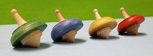 Trottola antica piccola, in legno duro colorata. Disponibile nei colori rosso, verde, giallo, blu e grezza e altri modelli. PRODOTTO IN ITALIA. Dimensioni : Altezza cm.3,7 - Diametro cm.3,2 | |||||
